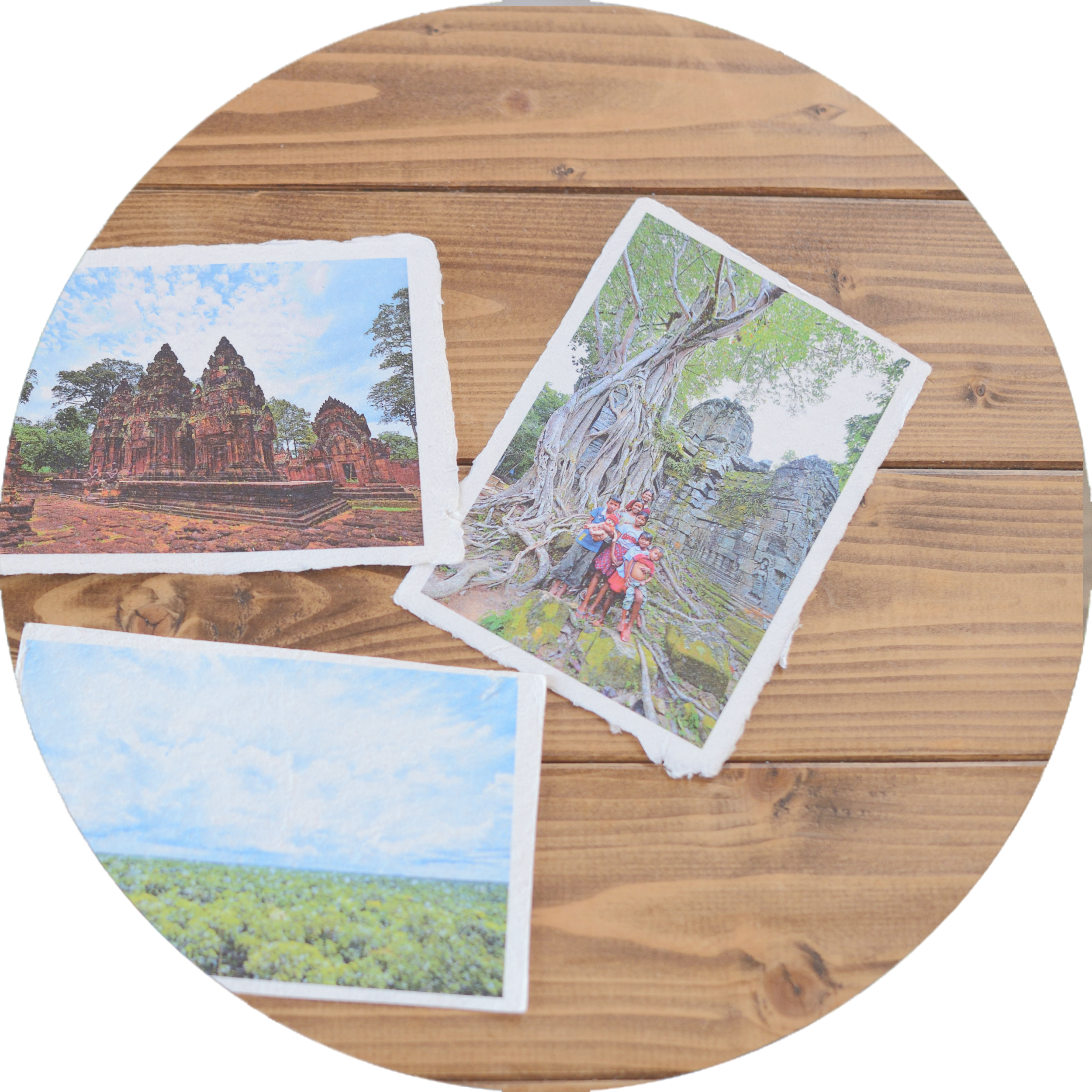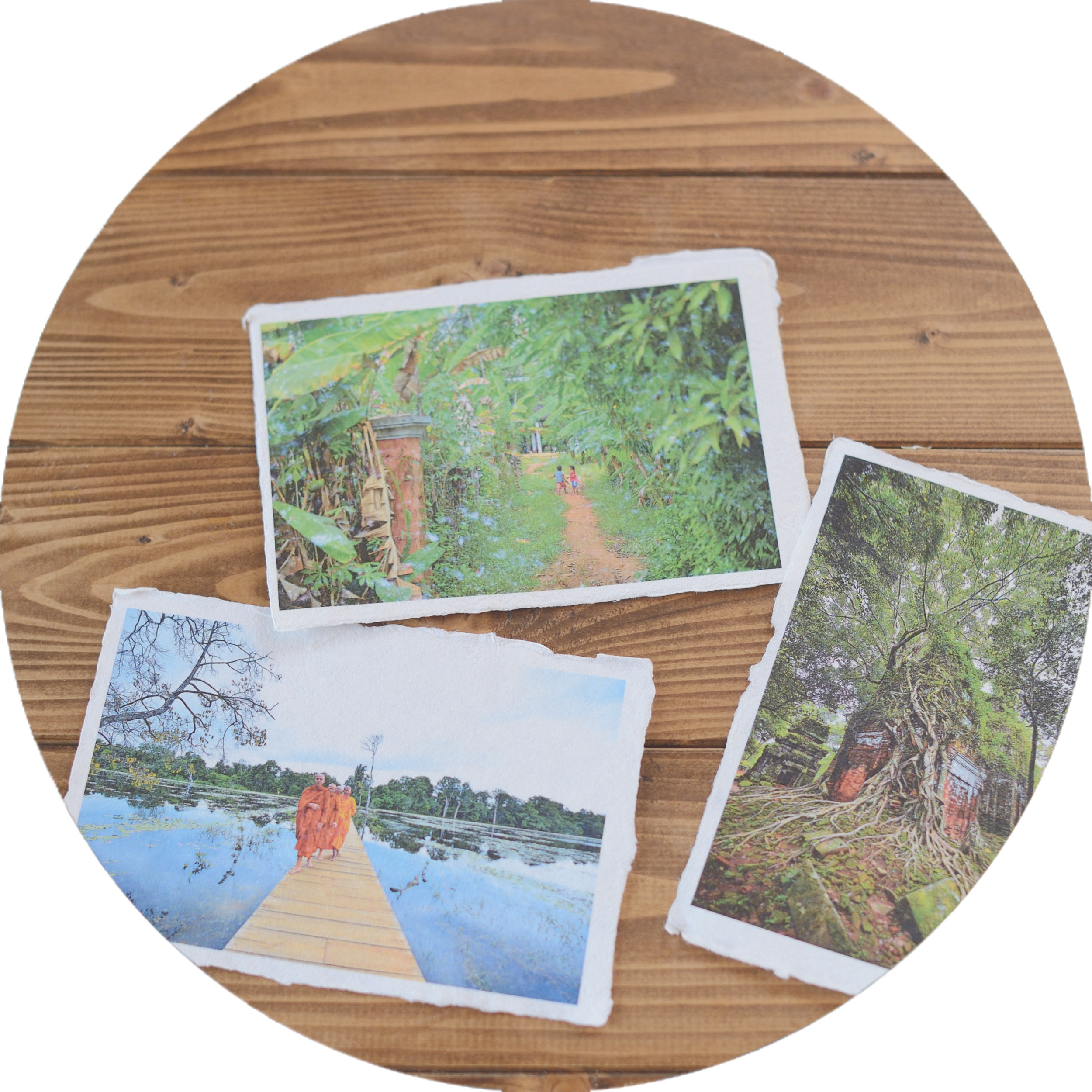 写真家MiNORU OBARAがカンボジアの地で出会った空気を、手作りの手すき和紙ハガキに仕上げました。 就労継続支援B型事業所「ポレポレファクトリー」さんとのコラボ商品です。 障害者就労支援の一環として、 ハガキ作りは障害をお持ちの方々へご依頼させて頂いております。